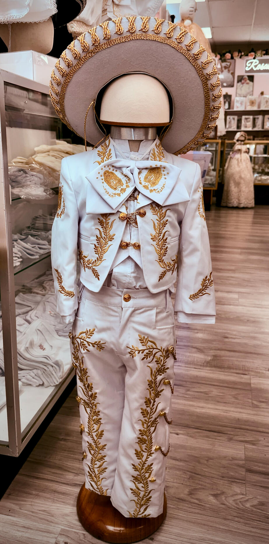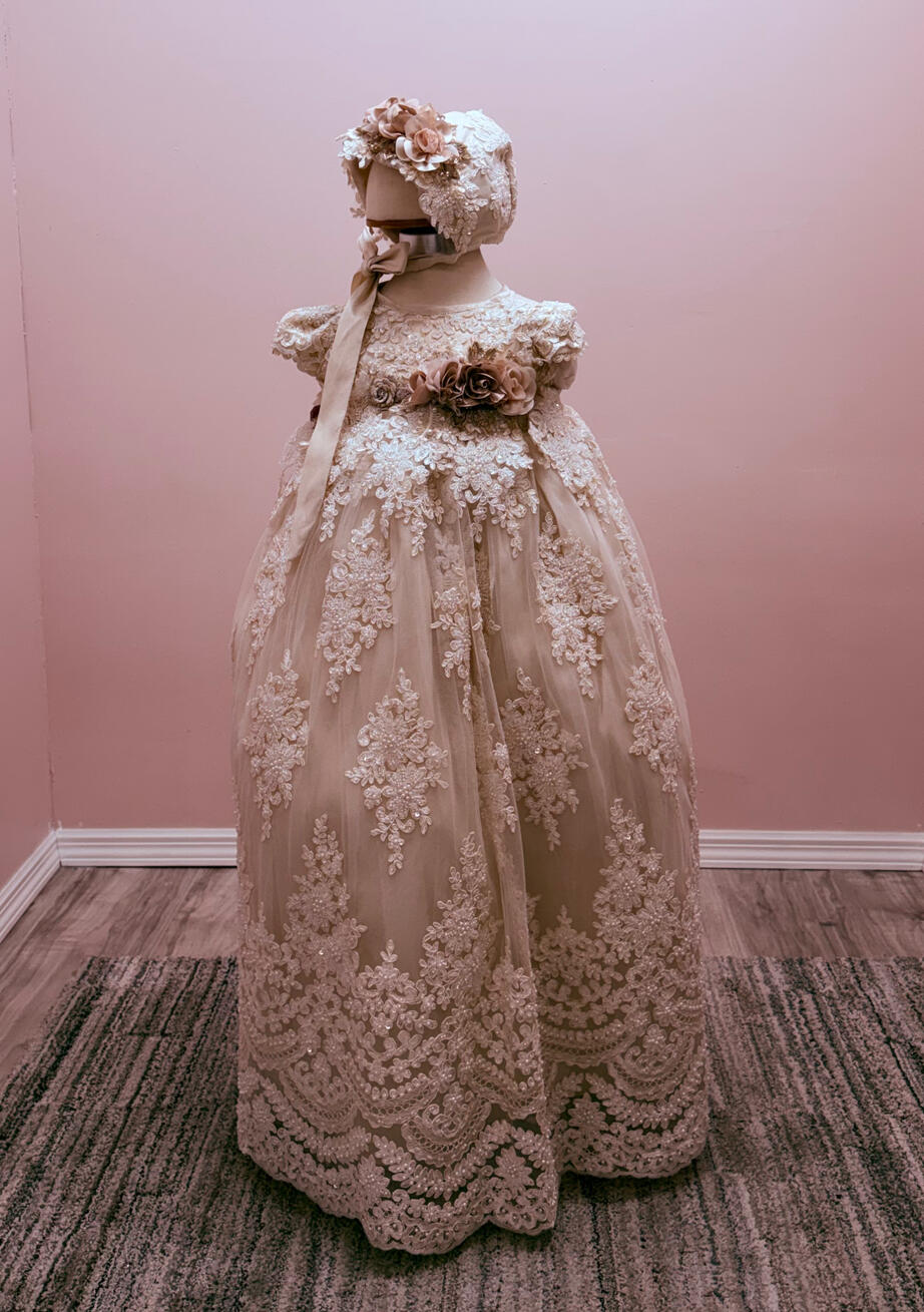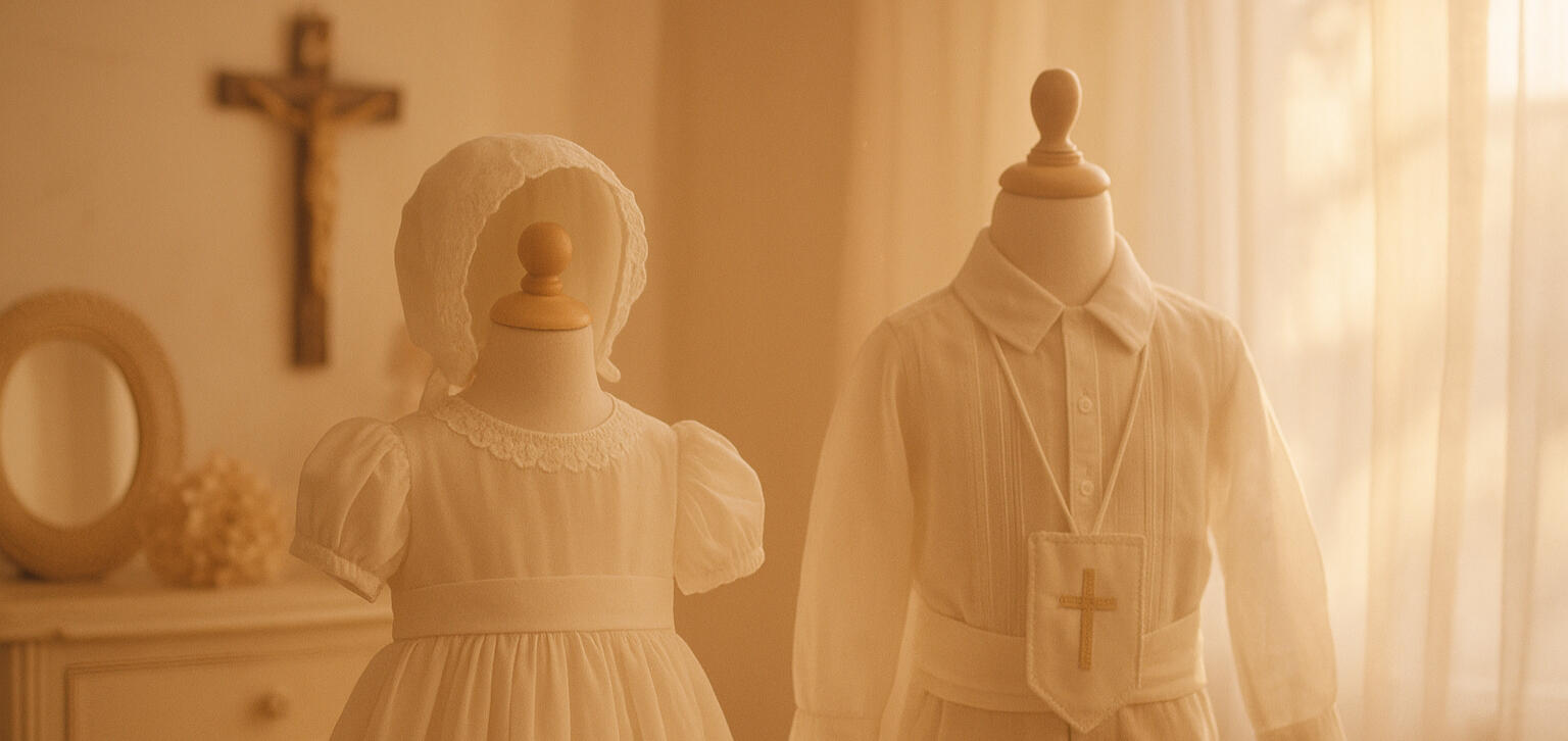 Cada prenda está elaborada a mano por artesanos expertos en México, combinando la tradición católica, la fe y la belleza del arte mexicano en diseños atemporales.Desde delicados vestidos de encaje hasta trajes tradicionales mexicanos, nuestras creaciones están hechas para honrar los momentos más sagrados de la vida.
